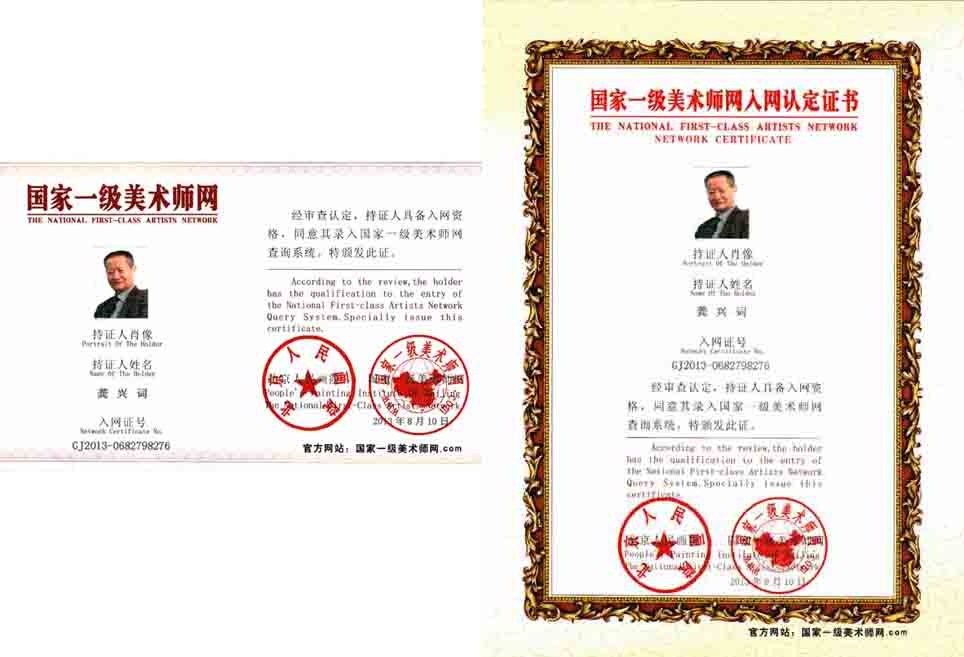 龚兴词、笔名野草山人、男,1944年生,甘肃敦煌人。现任国际中国书法家协会理事、中国炎黄艺术协会副主席(市场部润格:8000-10000元人民币/每平尺);中国国际工艺美术师协会理事;北京书画研究院院士;中国(国际)书画应用研究院副院长、教授;北京翰墨天成书画院会员;江苏省唐伯虎书画院副院长;新疆公关博爱书画院常务副院长兼秘书长。