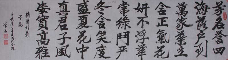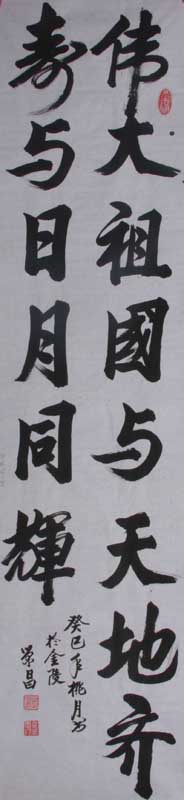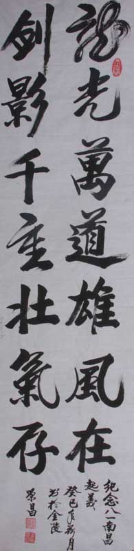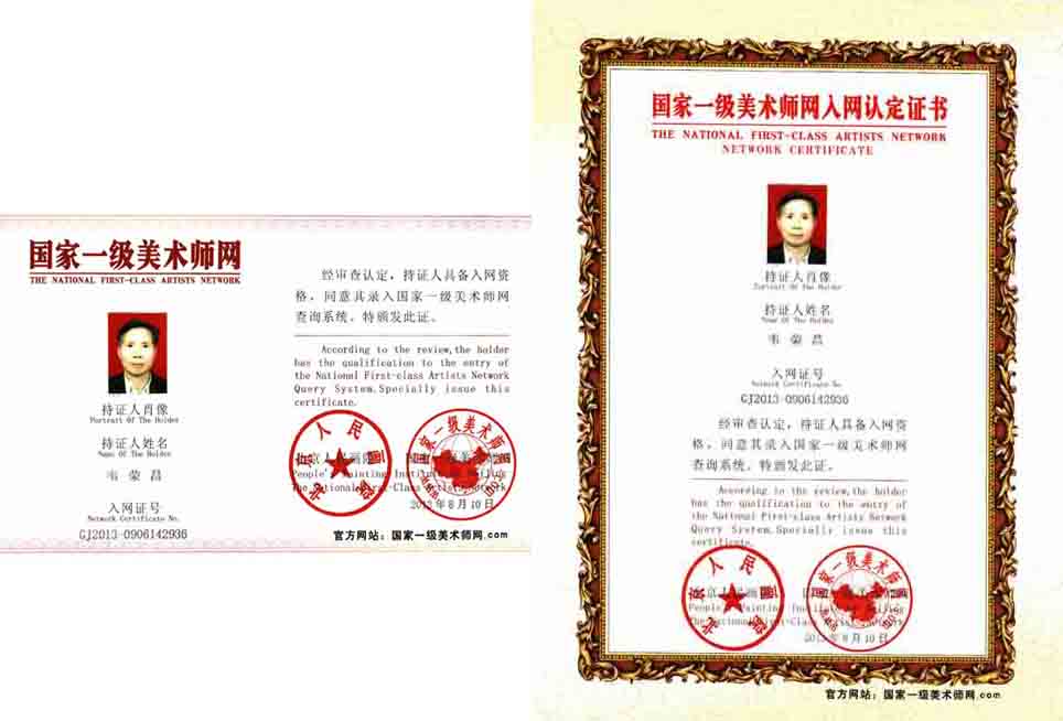 韦荣昌,76岁,浙江省东阳市人,退休后定居南京市,中专学历,党员,国家干部,经济师,财务科长,工交科长,厂长,书记等职,自幼酷爱书法刻苦向先辈学习,先后参加全国性大赛,曾获精品奖,金奖,一等奖,国际金奖。并被授予:书法博士、高级书法师、书法大师等称号。现聘任:中国书画家协会理事、江苏省颜真卿文化研究会名誉主席、东方书画艺术研究会名誉会长、中国书画艺术促进会常务理事、长江书画协会名誉主席、王铎故里书画院名誉院长、北京艺之魂宝书画院院士。获奖情况:中华书法家傅世作品入选,荣获一等奖,入选传世作品集五幅作品。中国书法家作品选,荣获金奖,北京军天书画院,荣获金奖,入选作品集一幅。江苏乔木故量书画协会荣获国际金奖,书法博士,入选作品集5幅。中国当代名家书画大观荣获金奖,入选作品集一幅。昭君文化节荣获金奖。星火燎原,百年辛亥—中国中老年书画名家作品邀请展获一等奖;并授予中华传承书画名家荣誉称号,纪念启功先生诞生100周年大展赛荣获金奖,现获全国金奖和一等奖70多个,作品赴韩国丽水世博会荣获金奖。中国国书画名家入选参展法国卢浮宫名家精品展,参展作品五幅。书画封面人物多部,书法九段,高级创作研究员,国家一级书画师、书法大师。入选作品集如《中华传世作品集》、《中国书画名家经典》、《中国书画收藏指南》、《中华国粹人物年鉴》、《中国书画名人录》,个人专辑有《二十一世纪德艺双馨书画名家》、《中国书画传奇人物》、《中国书画泰斗韦荣昌作品集》、中国当代书画大师盛世翰墨名家经典(国礼卷)等二十余部书籍。以及韦荣昌作者作品出版发行邮政局邮票、明信片、邮票价值均为0.8元。
