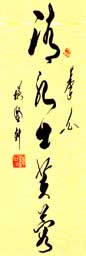 经多年摸索,学习古代诗词和书画名家的论述和墨迹,深刻领会中国书法的精粹,感悟中国文字立意之妙。结合西方美术理论为中国书法的特点,逐步完善了“编斜塑形、夸张其体”的写字理念,在此基础上,有创新,才能“百家争鸣,推动发展”学习本人,是学习中国书法的必要过程,是个打基础问题,而不是目的,不是终结。中国汉字的单身造型是很美的,具有巧夺天功之妙,如从艺术上稍予加工就更美了,对美的理解和感受,素有争论。我认为,从汉字结体的特点看,不疲不硬 ,无以体现骨峭;不偏不斜,难舒其俊俏之美。在学习上,石闭门自守,不固新已久,要善学各门之长等。