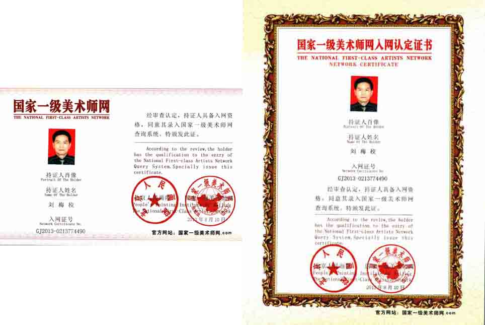 刘梅校,中国国粹艺术传承人,世界华人艺术大师,中华文化研究院终身名誉院长。艺术资料永久存录在《中华名人专家档案》及中国书画黄页精英数据库。