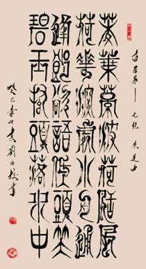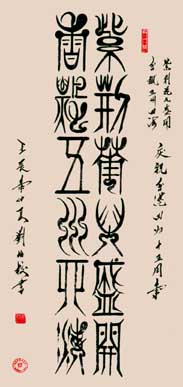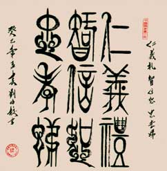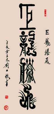 自幼“二王”入门,后学“颜柳”;继承人和创新祖国传统文化,潜心研究甲骨篆体(新篆)的书写法则,独特楷、行、草、隶等书法特点溶入(新篆)书写中去。既保留篆体原有的基本形态,又创出新时代的气息和风格。作品结体和美,线条圆润,刚柔兼备,艺健雄情,展现出自然之美,贴近生活之实的艺术个性。(新篆)书风以古朴,雅致,恢宏,骨力遵道,形似“颜筋柳骨”而著称;使得青少年乐见喜爱,容易接受和继承,也深受国内、外华人及外籍人士所青睐。