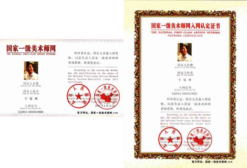 于保增,男、1955年生,山东广饶县人。字、墨轩,号、砚边斋主,现任胜利石油管理局老年大学国画教师,1993年拜著名书画家周光汉先生门下,东营市美术家协会会员,中国艺术家交流协会常务副主席兼秘书长,中国网教中心艺术部总顾问,中国老年教育书画研究院国画研究员。中国艺术名家研究院常务理事,中国当代艺术协会名誉主席,中国书画函授大学书画家协会齐鲁分会副秘书长,中国国家书画院副院长,台北故宫书画院名誉院长。台北故宫书画院客座教授。2011—2012中国书画家润格年鉴51页评定润格为每平尺人民币5000元、国际市场价为1000美元。毕业于中国书画函授大学北京总校,7门成绩平均为96分。2011年参加国家书画院建党90周年两幅创作作品【党的光辉照万代】、和【挥毫谢党恩】获优秀奖、爱国主义画家称号。其作品多次参加全国各地书画大展活动,并获奖编入画集。2000年9月份创作的《雪竹图》东营市政府出访外国时赠送给十三个国家的友人和组织收藏。2001年秋在胜利石油管理局老年大学创办了中青年、少儿国画班,2002年下半年担任胜利石油管理局老年大学国画研究会老师,并且教初级班、中级班、研究班至今。2005年5月被评为中国老年教育书画研究院国画研究员。至2010年6月下旬为老年学生举办大型书画展览活动五次。并多次组织中老学生、小学生一同参加全国各地书画大展赛活动,多次多人获奖。为老年大学争的老年人集体书画大展赛西安荣誉证书集体参赛特等奖及特等奖金杯一座。并编入国家出版的画集、大典。近期被推荐出版的书《世界名人录》、《教苑精华》、《世界优秀专家人才名典》、《中华于氏通鉴》、《中华魂、中华百业创新人物大典《共和国功勋人物治》、《中国知名专家学者词典》、《世界人物辞海》、《中国社会发展兴国人物大典》等书。2008年、2009年国庆期间应邀赴北京参加了《第三届、第四届中华脊梁——共和国杰出人物国庆59周年、60周年座谈会》,个人业绩同时入编《第三届、第四届中华脊梁——共和国杰出人物大典》之中。从2001年至今荣获全国“优秀园丁奖”荣誉证书及荣誉金杯、奖牌二十余次,荣获全国“教育教学成果金奖”,“优秀辅导教师”荣誉证书,在中央电视台、中国文联、青少年中心举办的“墨彩杯”少儿书画大赛活动中,被评为“中国优秀辅导教师300家”称号。并被评为本书的特邀编委。2005年7月荣获第29届奥林匹克组委会文化活动部、教育部、中央教育科学研究所、中央电视台书画院举办的全国青少年书画摄影展评活动中荣获教师组美术类组优秀辅导教师奖,被聘为本书的特邀编委。2006年在教育部、中央教育科学研究所、中央电视台书画院、中国青少年中心举办的同一活动中荣获教师组“优秀导师奖”被聘为本书的特邀编委。参加教育部青少年艺术委员会举办的迎奥运书画大展赛活动中创作的山水画“桃李争春”荣获金奖。同时25名学生参 赛,全部获奖,并出版了获奖作品集,本次活动获“优秀辅导教师”荣誉证书。第五届“墨彩杯”青少年书画大展赛38名学生获奖,22名学生出版作品集。2010年第七届【墨彩杯】全国青少年电视网络书画大赛37名学生获一、二等奖、其中十三名学生获入围奖、2010年7月21日至28日率领7名学生及家长去西安参加央视网络墨彩杯全国青少年现场书画比赛活动,谷嘉宁山水、王乃峥竹子、王星雨竹子、孙金羿竹子四名学生获银奖、赵冰清山水一名学生获金奖、卜一琪花鸟、张语涵牡丹蜜蜂二名学生获特等奖,37名学生的作品被刊登在墨彩风华获奖作品集中。中国中央电视台央视国际网络墨彩杯组委会授予“墨彩书画名师奖”。2011年1月中国网教中心授予“青少年艺术启蒙教育家”荣誉称号。2011年8月率领学生及家长去韩国参加中韩青少年书画展,两名学生分别获金奖、和铜奖、获得韩国奖金1万至3万元,2012年8月率领学生及家长去韩国参加中韩青少年书画展,两名学生获金奖、2名获银奖,一名获铜奖、取得了优异成绩。在教学过程中,始终把握熟悉教材,掌握教材,升华教材的重要方法,在艺术指导方面始终追求依照自然,遵循自然,回归自然的方式教学。使学生大胆挥笔,大胆创意获得速学速成的效果。