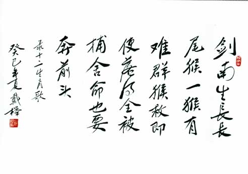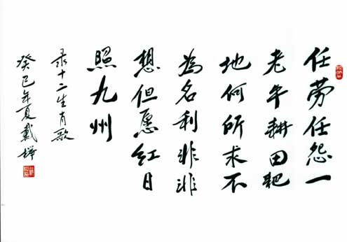 戴榉,男,1937年6月生于南京板桥,系南京市铁心桥中学退休高级教师。有格言、诗歌、散文、论文和书法发表。代表作品:格言有“自强不息时时进,厚德载物事事成”。“生命长短看时间,人生价值在奉献”等。诗词有《和谐社会好》、《祖国万岁》、《铁心桥新貌》、《成语诗十首》、《十二生肖歌》、《反腐倡廉吟》、《不忘感恩》、《中国共产党90华诞颂》、《十六字令·奥运献辞》、《忆秦娥·板桥新城》《浣溪沙·赞改革开放》等。散文有《毛主席,人民永远怀念您》、《共产主义是不可抗御的——(革命烈士诗抄)读后感》,《父亲》、《图书馆使我奋进》等。学术论文有《让文明礼貌之花盛开不败》、《谈谈道德文明》、《青少年要加强个人品德修养》等。书法有《十二生肖歌》、《题贺十八大》、《缅怀毛主席》、《修身如执玉 种德胜造金》、《江山千古秀 华夏万年春》、《红花香千里 春风暖万家》、《有天皆丽日 无地不春风》等。