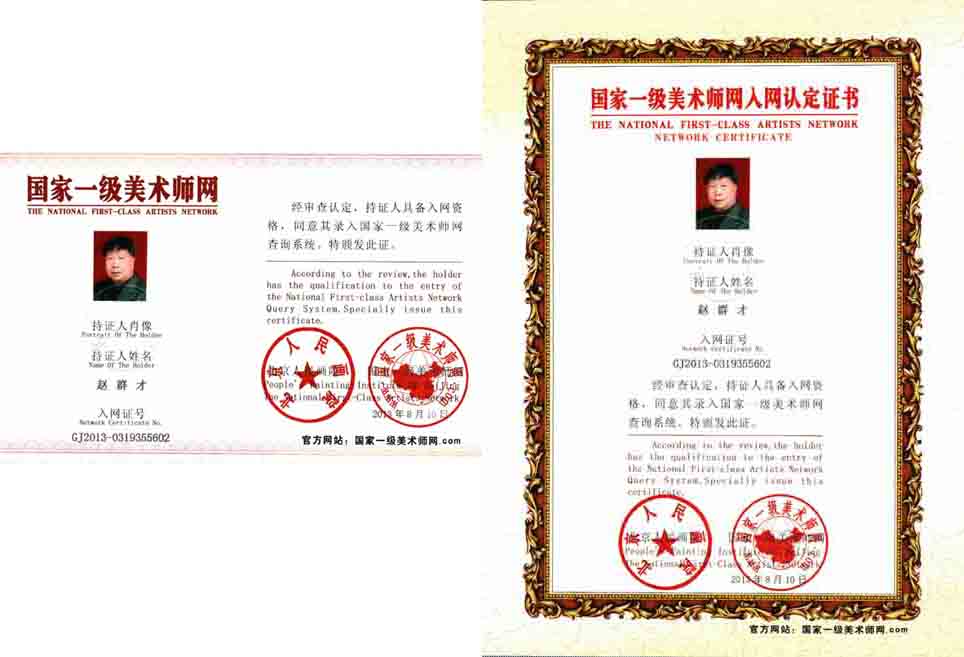 赵群才,1946年出生,中共党员,系中国书画家协会、国画家协会、中国国际书画艺术研究会会员、理事,中国艺术学会常委,中国有突出贡献专家、高级美术师、书法师,获得国际资质认证为顶级品牌,中国公益事业促进会常务理事、被中央有关文化团和联合国科教组织授予“2012年中国年度艺术家”、“2012年中国双百人物、艺术标杆、艺术传承人、国际文艺泰斗终身成就奖”等荣誉称号。