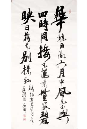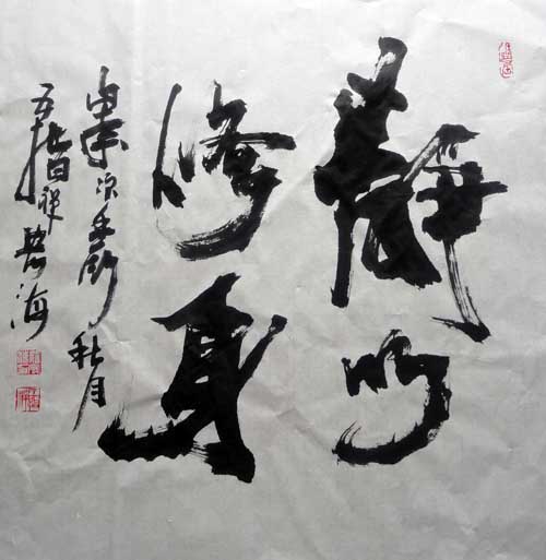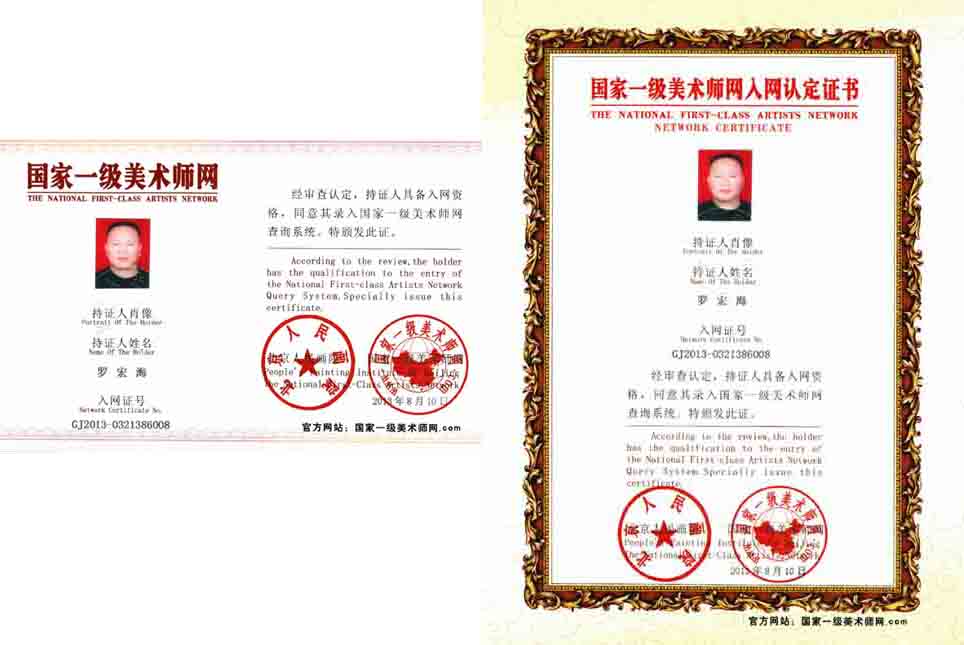 罗宏海,男,1974年生,汉族,大专文化程度,广东省梅州市丰顺县人,残疾人仕,号五指禅、狂海,以双手抱笔书写。自小喜爱书法,幼习颜柳入手,后推东坡、岳飞、李铎等书风。作品多次得奖,备受海内外友人追捧、收藏。2009年11月中国迎上海世博会公益书画展活动中被评为银奖,并授予“共和国杰出书画艺术家最高荣誉成就奖”称号,作品入编《情系世博魅力东方中华人民共和国杰出书画艺术名家》大典。2010年5月获纪念唐寅诞辰540周年国际书法交流展金奖,并授予“国际书画交流贡献奖”和“国际优秀书画家”称号,作品入编《纪念唐寅诞辰540周年国际书画交流展作品集》。2010年6月在中国书画名家上海世博国际交流展中获金奖,并授予“中国世博书画名家”的荣誉称号,作品入编英汉双语大型世博纪念典藏巨著《中国书画名家大典》,2010年6月作品入选第十三届“中国当代实力派书画拍卖专场”。2010年7月第四届“民族情”全国书画艺术大赛获得金奖,作品入编《中国当代书画家精品集》并授予“中华文化和谐使者”称号,同时加入中国书画家协会任职常务理事。8月在“第二届亚欧杯国际书画艺术大奖赛”中获得金奖,并聘为中国翰林书画艺术院副院长。9月参加《光辉历程•向党的九十华诞献礼全国中老年书画名家作品大典》获金奖,并授予“爱党爱国功勋书画家”荣誉称号。10月参加《榜样中国》中国当代艺术家精品展暨“榜样中国”人物评选,获“特等奖”,并授予“榜样中国•中国知名艺术家”荣誉称号,并担任中国书画研究院院士及研究员职务。作品参加“纪念白求恩诞辰120周年”,中华诗书画国际交流展活动,获得“国际交流金奖”,参加第三届神州杯全国书法艺术大赛金奖,作品入选“红旗颂爱国书画大展巡回展”,作品入选“红船颂、长城长——辛卯迎春建党九十周年中国书画名家作品邀请展” 作品荣获全国各类书画大赛特金奖、金奖、一等奖,共50多个银奖、创新作奖十多个,并荣获文化部2011年度十佳艺术人物;2012年入选《63周年国庆献礼——见证中国•爱国文艺名家国粹集》并成为封面人物;作品入选中国文献出版社《书法中国》——特刊——影响中国书法界发展的当代十八大书法家;现为中华人民共和国中史编辑委员会诗书画院理事、中国翰林书画艺术院副院长、中国书画研究院院士、中国书画家协会常务理事、江苏省唐伯虎书画研究院副院长。