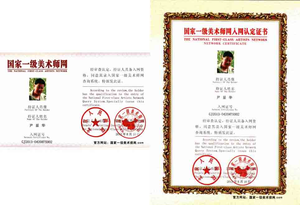 尹老,不仅精通本行金融业务,而且自幼喜爱毛笔和硬笔书法。在职期间,由于工作性质关系,基本统揽了银行对外宣传的标语书写工作。告老后,仍不沾社会不良习气,茶余饭后扰勤练翰墨而孜孜不倦,且擅长行楷书法,经数十年摸索苦练,已自成一体,每当挥洒,即可妙趣横生,堪称出类拔萃,鹤立鸡群,是当地书法界之佼佼者。所撰写的毛笔书法(春华秋实)一书共三部和硬笔书法《追溯》一书共五部,均被地极市的衢州图书馆收藏。由此,尹老早在2002年就被请进地级市老年书画研究会,曾多次参加书法大展。
