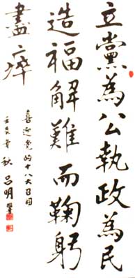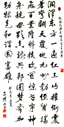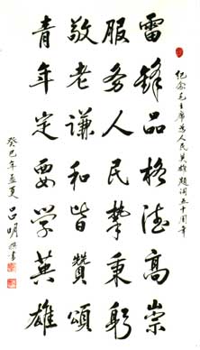 吕明,男,1935年10月生,广东四会市人,幼承家学,喜爱书画,1987年首次参加全国商业系统书画展,1989年在四会市粮食系统举办一次本人书画展:1993年退休后,加入四会市老年诗书画研究社,跟着进入中国书画函授大学深造,再学两年获得毕业证书,从此更积极投身社会书画联展和参赛活动,历年来获得不少奖项。