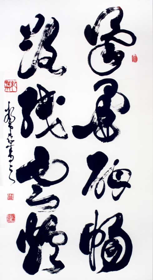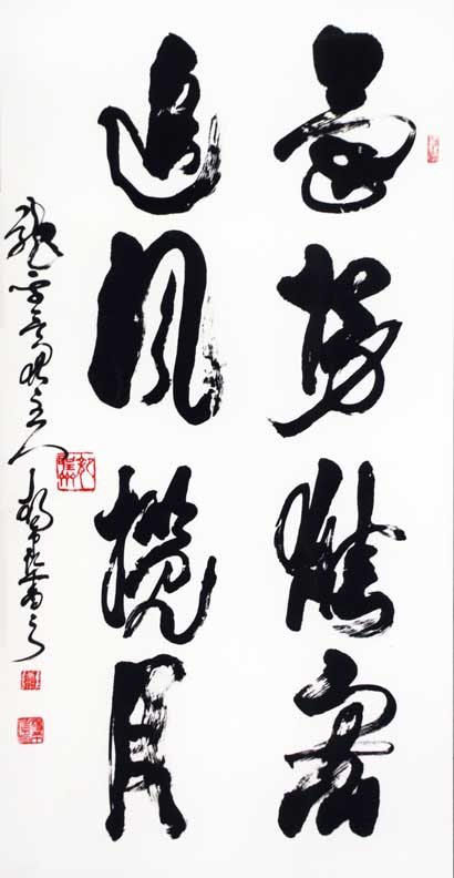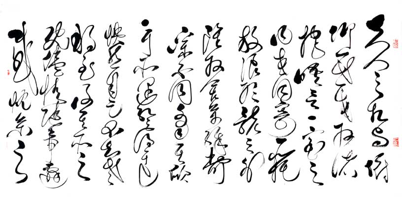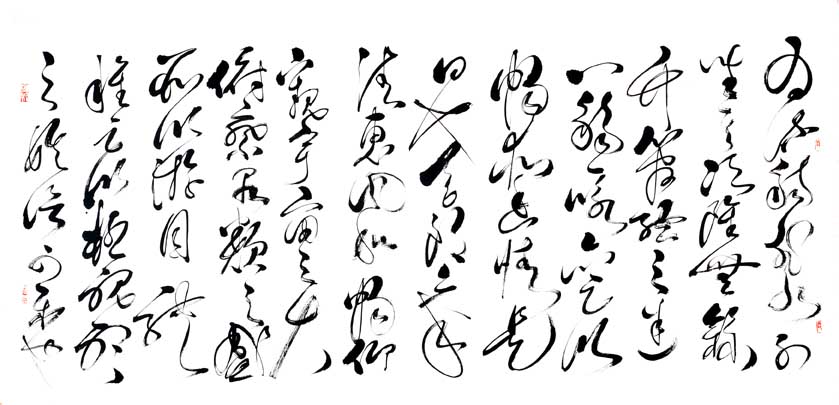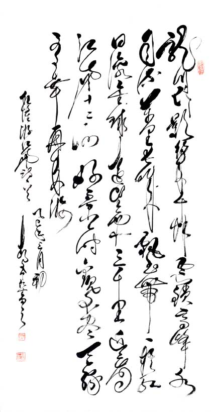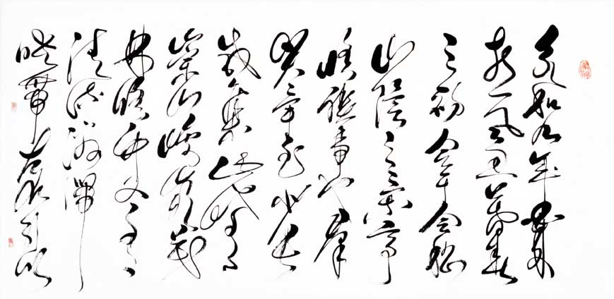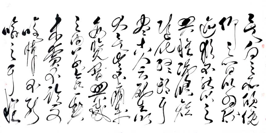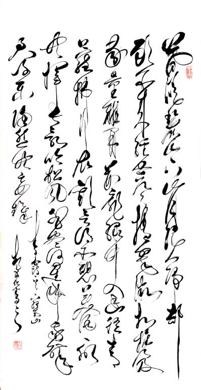 其代表作:独创"神州巨龙"横竖两种写法,象征男女绝对平等,更能显示出妇女的高大形象,长卷《孙子兵法及三十六计》、《兵经百篇及锦囊妙计三十六》、《老子道德经》、《前后出师表》、《黄庭坚诸上座》、《兰享序》、《千字文》、《怀素自叙》、《张旭古诗四帖》、《毛主席诗词全套》、《廉颇与蔺相如列传》、《唐诗三百首》、自作诗等共计千米左右,己装裱好300多米,另有很多条幅,全部用狂草体书写。