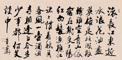 董永华书法创作渊于晋唐,从“二王”入手,追溯殷商文字及汉魏碑帖,研习米芾、黄庭坚、王铎等名家书道,以现代书法的理论融合古典儒雅的书风。曾受权希军、刘文华、李松、臧科先生的指教,注重线条的纯净和节奏之美。耕研40余年,沉淀了深厚的书法理论和创新经验,书法作品疏密相间,清秀俊逸,平和情感与豁达胸襟荡其笔墨之中。曾在全国“兰亭杯”、“世界遗产杯”、“翰墨风华杯”等书法大赛中获奖,2004年全国名人书画大赛获佳作奖,中国艺术之星书法大赛获金奖;2005年参加全国德艺双馨艺术家作品展,举办北京董大华百米书法长卷展。受到书法界专家一致赞誉。《中华文艺画报》2005