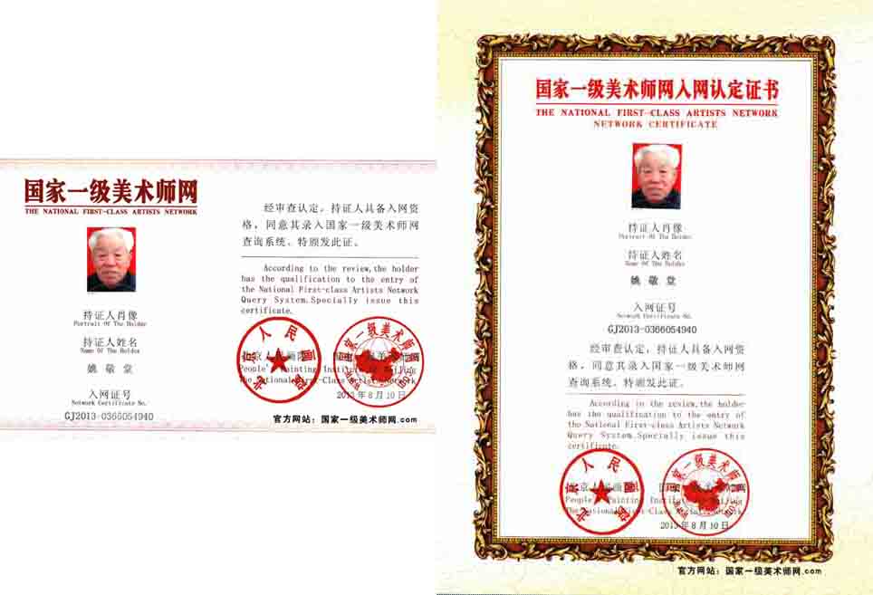二○○七年元月十日,中国专家评定联合会。定为“中华人民共和国优秀专家、书画研究员”荣誉称号;
