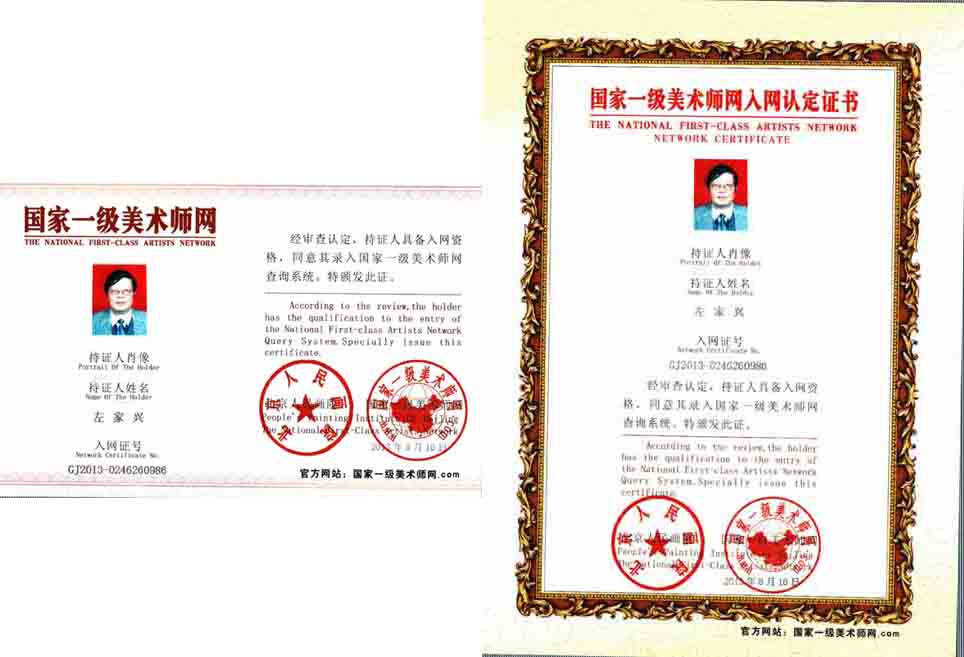 1、中国书画艺术家协会、中国书画学会、中国文学家联合会——“您在艺术创作中始终坚持正确的创作方向,体现了对社会变革与发展的密切关注和深邃的文化内涵,实现了艺术价值和社会价值的高度统一,您的艺术成就,被业内艺术家敬为表率。”