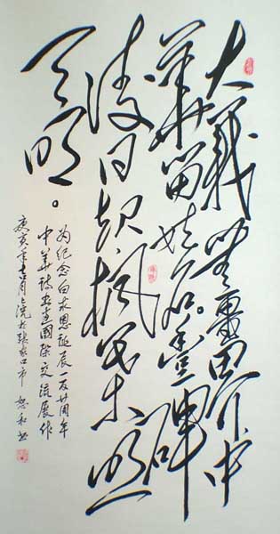 毛体书法作品近获“庆祝建国60周年翰墨颂伟人全国书画大赛”金奖、“纪念毛泽东《沁园春·雪》发表65周年第二届全国书画大赛”金奖、“写红歌、画红歌全国书法大赛邀请展”金奖、纪念毛泽东“中华人民共和国各民族团结起来”题词发表60周年全国书画邀请展金奖、“纪念毛泽东为十大元帅授勋55周年全国书画大赛”金奖、“纪念(国歌)诞生75周年书法大赛”金奖、“和谐亚洲·激情亚运中华国粹题名艺术创作活动”金奖、“纪念白求恩诞辰120周年中华诗书画国际交流展”国际交流艺术金奖、“纪念建党90周年百名杰出成就”金奖。《颂歌献给党》大型文艺作品征集评选活动中获书法类金奖。“寅虎咏春·全国诗书画印四绝大赛”佳作一等奖、“珍爱地球·守望家园首届国际华人文化艺术(宣言)创作大赛”国际华人环保艺术奖。“首届中国牡丹艺术论坛暨全国牡丹诗书画活动”优秀作品奖。“辛亥百年·百位华人艺术家评选”创作一等奖、“全国楹联书法绘画邀请展”创意奖、“魅力世博·中华国粹题赠艺术大赛”创新作品奖、“书香杯·第二届楹联书法绘画邀请展”联墨艺术奖、“东方之冠·全国书法美术作品展”入展并收藏。被授予“中国当代优秀书画创新百杰”、“中华国粹代表人物”、“中华百强书画艺术家”、“深受人民群众喜爱的红色艺术家”、“红色公益事业推广功臣”、“讲团结促和谐艺术功臣”、“华人艺术界资深书法家”、“翰墨颂元帅杰出艺术家”、“辛亥百年·百位中国艺术大家”、“民族艺术先锋”、“杰出艺术大师”。2011年参加“第四届中日友好文化艺术交流展”作品被日本国收藏,并授予《中日文化艺术大使》“当代杰出艺术家”等荣誉称号。