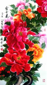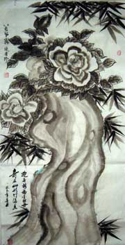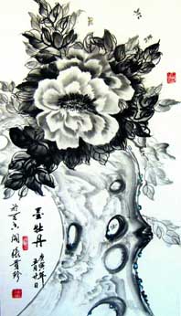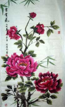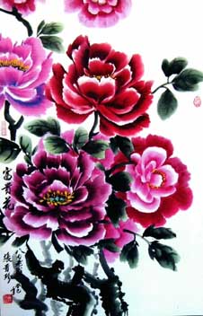 我的恩师是鲁美教授孙恩同,他的国画对我启发很大,如:构图饱满、层次分明,所以我在画牡丹时采取了他的画风,在创作中不断探索、研究、创新,最终形成了自己的独特构想,潇洒自如,耐人寻味。