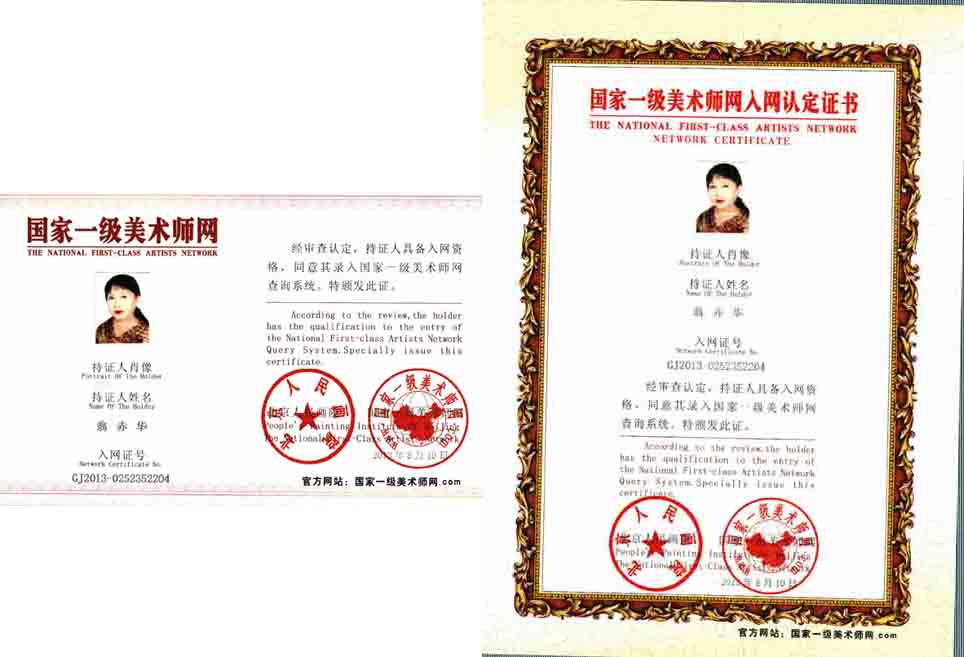 翁赤华,女,汉族,大专学历,1951年8月20日生。磋砣岁月,曾去黑龙江支边、返城后1975年拜名师张仃、范曾、韩美琳、孟庆江学习中国画,1986年加入温州美术家协会;1989至2001年自开美术设计室,从事包装装潢设计及服装花版设计;2007年4月开始参加全国书画大赛,唐诗《望庐山瀑布》获“中国风”世界华人书画大赛一等奖;毛泽东诗词《红军大怕远征难》获“伟人颂”全国书画大赛金奖;《百福图》获《翰墨夕阳·中国老年书画贤荟萃》特金奖提名;毛泽东诗词《蝶恋花·答李淑一》获全国大赛金奖,等等。现任世界华人书画协会名誉副主席、中国书画家协会理事、吴道子艺术馆研究员等。