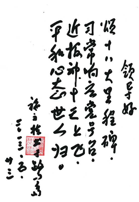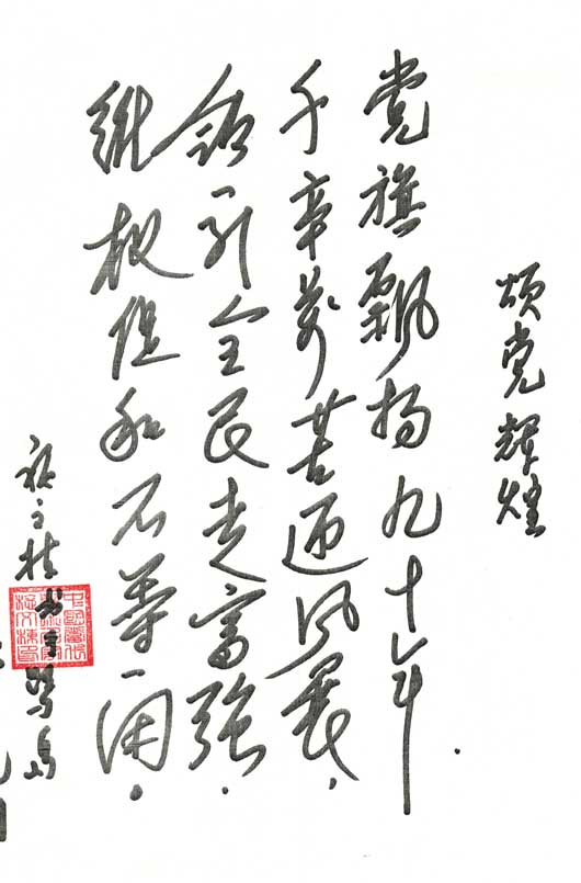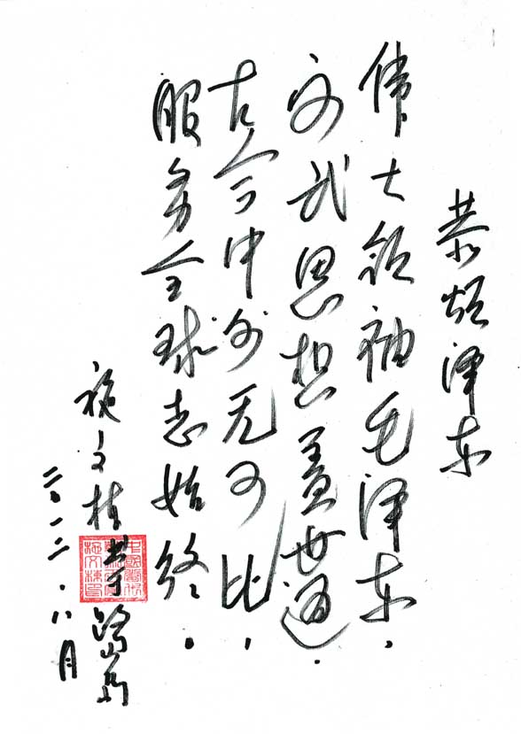 回眸童年时代,喜欢吟诗作画,1949年初参加革命跟党走,在党的培养教育下,树立革命的人生观、世界观和价值观——全心全意为人民服务。在革命建设和改革开放的各个转折时期,定要作诗欢慰,吟颂社会主义好。深感要当好人类心身健康的卫士,必须具有政治家、预防家、医疗家、教育家、组织家、宣传家和文艺家的特色、风度和以预防为主、防中有治、治中有防、防治结合、中西医并重、突出中医;面向病人、面向家庭、面向社会、面向世界、面向未来。