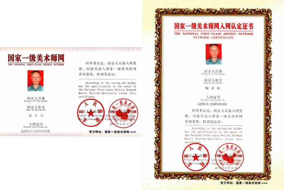 邹开华,男,汉族,1934年生,1960年毕业于西南师范学院。长期从事民族教育工作,曾任中国教育部第四届、第五届国家督学。自幼喜爱艺术,退休后,入成都市双流县老年大学学习,多次参加国内外艺术大展获奖。2011年上海《第21届“文明来宝杯”书画艺术大赛》获银奖;2012年伦敦奥运之旅中国当代书画作品展获金奖;《中国迎党的十八大胜利召开公益书画展》中获金奖;作品艺历入编《庆祝中华人民共和国建国六十周年全国名家书画艺术大展作品集》、《中国知名文艺家大辞典》、《伦敦·奥运之旅》、《中国荣誉民族的骄傲——走向世界的中国当代书画艺术名家大典》和中国书画家协会编辑的《当代书画艺术家大典》等。获“中国世博艺术名家”等影响世界的中国当代书画艺术名家“国际知名文艺家”等荣誉称号。