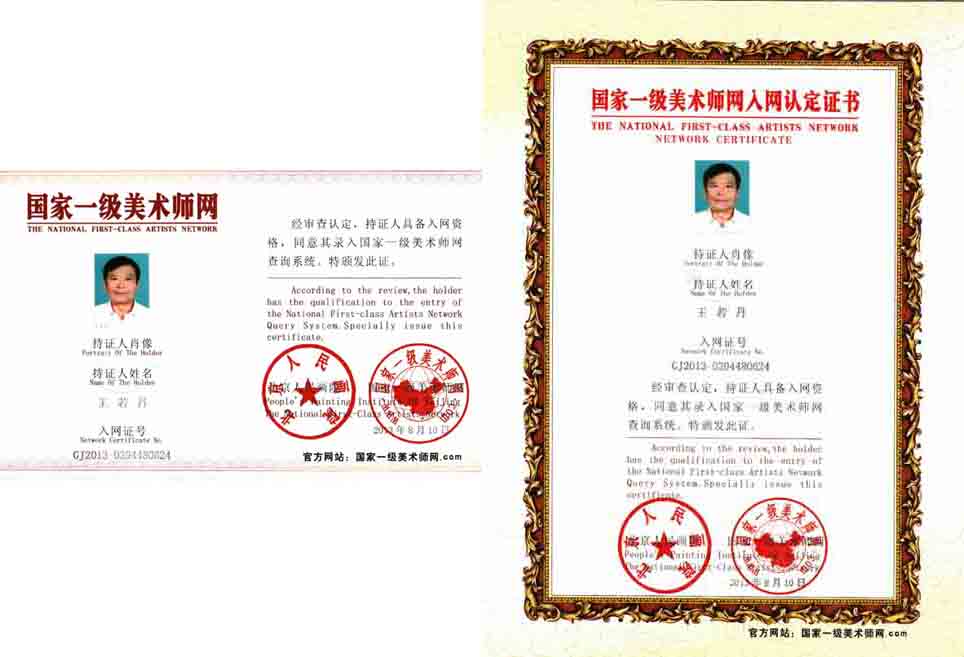 2010年作品通过中华人民共和国文化部艺术评估委员会评审,12000元/平方尺,作品通过世界书画艺术评介协会认定:国内市场价12000元/平方尺,国际市场价2500美元/平方尺。