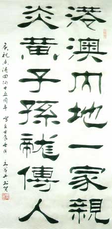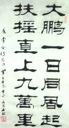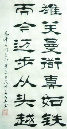 2008年4月参加:“世界华人艺术精品大展”东京交流展,隶书《沁园春·雪》荣获国际金奖,并被日本友人收藏。