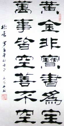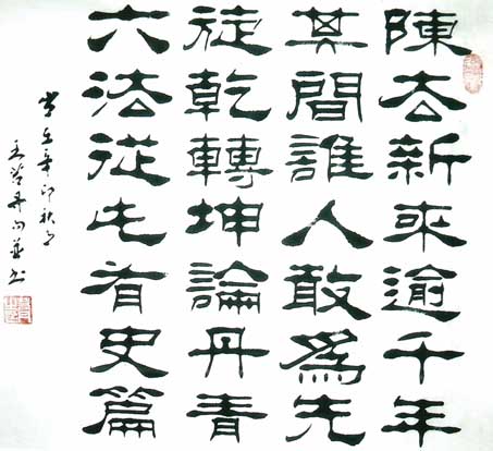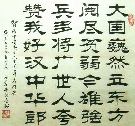 2012年7月经中国五体书法研究会评审,隶书书法50000元/平方尺(人民币)。