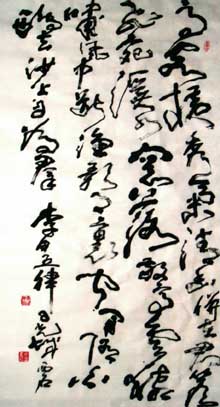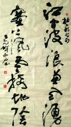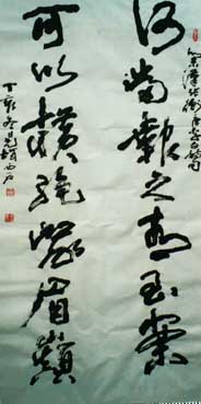 自幼热爱书法艺术,先取法晋人,临习二王书法,后转学唐风;厚古不薄今,喜临旭、素、黄庭坚、傅山诸家名贴,研习米芾、林散之、武中奇、刘子善笔法,兼收并蓄,为我所用,长行草书。书法界对其书法作品评说:“着墨浓重,古丽姿肆、气韵生动、节奏强烈、顿挫分明,线条有天马行空,若激流奔泻,有高山雄视之情调”,《榜样中国》作品评委点评:“在艺术中,有“性格”作品,才算是美的,您的作品最具有价值所在的就是创作之精诚和技法之娴熟流畅,给人以突出、稳健、灵动的艺术享受,亮点很亮、特色突出、个性鲜明、精诚所至则能动人,虽是一纸静态画面,却完美凸现其动态的韵律,其势之大、其力之沉均表现出其功力所在,整幅作品渗透着力与美的张扬和平衡,生动表现了创作者刚直、爽利、豪放的性格”《当代艺术家精品集》入选作品点评:“整体端庄流畅,师古不泥博采众长,用笔凝炼精到、章法规整有度、线条饱满刚柔并济、阖其气以求精,涵其韵以通神,禀赋天地灵气,富有很强的韵律感,创造性的做到了景致与情怀的融合,历史与现实的和谐统一,展现出娴熟的艺术功力,尽显本人艺术风格,颇具大家风范,实谓最具收藏价值作品”等。