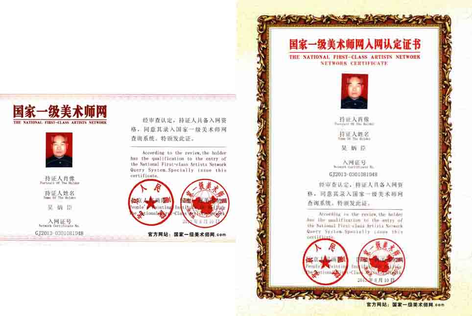在隆重纪念周恩来总理诞辰110周年人民功勋书画家精品大展中荣获金奖、入编“中国功勋书画家精品大典”授予“人民功勋书画家”称号,在第八期“夕阳红·中国老年奥运书画精品典藏”获金奖,入编“夕阳红中国老年奥运书画精品典藏”授予“奥林匹克艺术之星”荣誉称号。纪念中国改革开放三十周年全国中老年书画作品北京邀请展获金奖,入编“纪念中国改革开放三十周年全国书画展作品集”授予“当代中华老人德艺双馨艺术家”称号。现任:九州枫林国际书画艺术院院士、当代中国书家协会会员、北京华夏国艺书画院院士、中国老年书画家协会会员、北京神州博艺美术院一级美术师、世界华人书画家协会终身会员、北京艺之魂宝书画院特级书画师、北京宝延轩书画院特邀艺术顾问、北京众朋达国际文化艺术中心高级创研员。