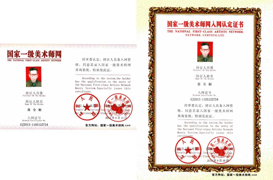 查全枢(又名万寿枢),男,1934年生,安徽省泾县桃花源镇查济村人。大学本科学历,画家,高级工程师。历任企业设计科长、研究所长及安徽省工业设计协会理事长。1957年毕业于西南大学美术学院,师从张宗禹(留法油画家兼人体解剖学家)、尚莫宗(著名版画家)、刘一尘(著名油画家)及著名画家郭克、陈晓曦、杨永清等。曾为云南省暨昆明市美协会员,现为中国文化艺术发展促进会会员。作品在“中国老年书画摄影作品大赛”、“中华魂首届中国书画作品展”、“辉煌北京第二届和第三届全国书画艺术作品大赛”、“当代中华儿女诗词书画作品邀请赛”和“中国书画名家作品2005金秋国际”中,分别荣获金奖、一等奖和特别荣誉金奖;被特别授予“全国一级书画家”(艺术级别),荣获“当代优秀书画人才”和“中国老年金奖艺术家”荣誉称号。作品多次发表于省市及全国性报刊杂志,七次入编全国性书画典籍,出版有《查全枢钢笔画集》——(查济古建筑风景系列)和《王稼祥故居画集》——(后岸古建筑风景系列)。2007年作品经中华人民共和国文化部文化市场发展中心艺术品评估委员会评估润格并发证。
