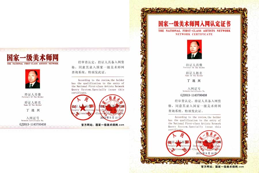 丁连兴,字诚丁,号芙蕖翁,室署:鱼乐斋,1940年生于山东潍坊。幼承家学启蒙,酷爱中国传统写意花鸟艺术。绘画艺术的学习过程中不断博取诸家之所长,后在长期的艺术创作实践中,逐步形成了个人独特的艺术风格。所画作品构图严谨,造型扎实,简洁明快,富有生气。尤以画鱼擅长,金鱼、鲤鱼、鳜鱼造型变化多姿,情趣盎然,洋溢着大自然生气勃勃的气息。现为“山东潍坊市老年书画研究会会员”,“齐鲁书画研究院画家”,“中国书画艺术委员会会员”,中国当代艺术协会终身名誉主席“。作品曾入选“中国书画名家金奖大奖赛”,“环保世纪行,情系中华——中国美术书法摄影大赛”,“红旗颂展”,“燃情岁月,全国书画作品北京邀请展”,“第四届加拿大中华诗书画大赛”等全国性主流画展,并多次荣获金奖及其他奖项。作品入编《当代书画艺术名家精英大典》、《当代中国老年书画名家作品集》、《当代中华老人书画艺术家精品集》、《纪念中国改革开放三十周年全国书画作品集》、《中国书画博览经典》等全国性大型书画典籍六十余部。更有多幅作品被“画圣吴道子艺术馆”、“汤显祖纪念馆”、“彭德怀纪念馆”、“北京华夏国艺画院”等单位永久收藏。