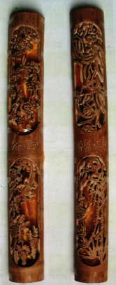竹刻——梅·兰·竹·菊·对联;篆刻——和平崛起