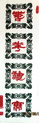 卢俊辉,字柏瑞,号集贤阁主,文化部、中国乡土艺术协会高级研究员、中国民间文艺家协会剪纸专业委员会会员、陕西书画艺术研究院院士、陕西榜书家协会会员、渭南市老年大学书协会会员、渭南集贤阁书画剪纸艺术工作室主人,其书法作品沁园春雪在全国当代书法美术进京联展获艺术创作奖、剪纸作品科学发展共奔小康在全国第三届书画大展中荣获金奖、书法作品满江红岳飞入编当代艺术家书画精品藏典荣获民族艺术家称号、在渭南市委宣传部市文联,举办喜迎十八大建设东大门书画大展中花中四君子四条屏剪纸作品是唯一入展的剪纸作品。