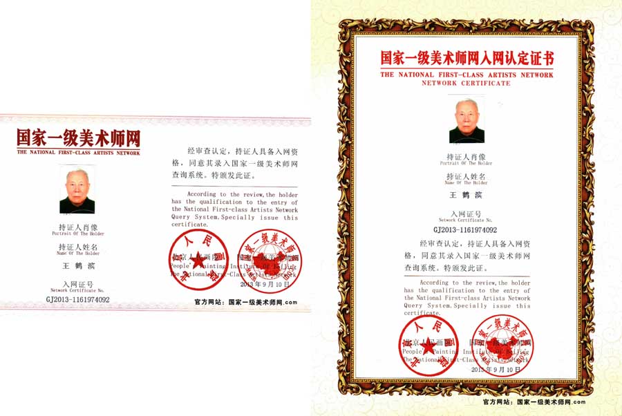 1、 获中国历代书画名家“当代名家”等多种证书。