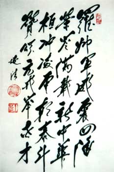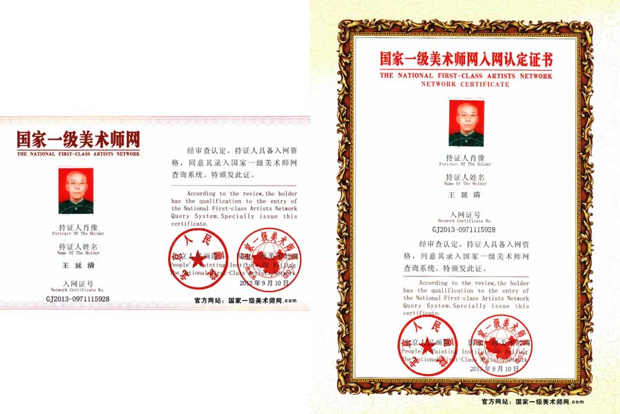 王延清,笔名国章,白山居士,室名天德斋,男,汉族,共产党员,1927年生,辽宁盖州人,毕业于大连财经学院,盖州农行经济师,现为中国书法美术家协会副主席;中国书画名家研究会专职副会长;中国国家书画院副院长;世界华人美术学会副主席;世界教科组织联合协会副主席;首席艺术家,高级书法师;北京兰亭书画院、香港书画院、山东天香、国画院名誉院长;中国国画院、上海民族画院、楚天艺术研究院、中原书画院院士、高级书法师;中国老年书画研究会、中国国学研究会研究员;中国艺术院诗人大世界、渤海诗报诗文创作员;中国一级著作家;浙江东方书画廊客座教授;英格兰皇家艺术基金会永久学术顾问,系中国当代艺术名人,国际知名艺术家。改革开放三十几年来,先后共创作书法作品上万幅,诗词楹联作品上千首(幅),先后参加省、市全国国际书法、诗词大赛共有200次,多次获奖,荣获特等奖、金奖、一等奖就过60次之多,书法和诗词作品编入大典50多部,编入书刊100多集,各级报纸、电台、杂志发表的有100多次,诗词数百首、书法作品亦几百幅之多。荣获模范艺术家、杰出艺术家、功勋艺术家、人民艺术功臣、艺术大使、艺术大使等十多个称谓,获得各种奖杯和奖牌多种。