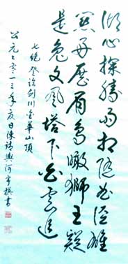 陈靖舆,又名靖宇,笔名阿宇,晚号长江游子,白族,1937年出生,云南剑川人。中共党员。简介入编《宁蒗彝族自治区教育志》“人物篇”。1994年,云南省委、省人民政府隆颁发“为云南边疆的解放和建设作出了贡献”荣誉证书。1992年,退休后潜心从事文学艺术创作活动。创作的诗词、对联、书法、散文、论文、格言作品(简介)入选入编《中国当代精典诗选》、《中国诗词著作家辞典》、《吟苑英华》、《中国诗词书法选集》、《中华翰墨名家作品博览》、《中国当代著名书画家珍品选》、《中国作家》、《中华名人格言》、《艺术中国》、《全国书画作品最具收藏价值30名艺术家》等等几十部大型文献正式出版。作品参与国际国内大展赛屡屡获奖。有文联作品被中国当代作家作品作陈列馆列入展出和永久性收藏作品。“行草书法对联”在第四届世界华人艺术大会香港大型艺术展上获“海口市百名优秀作家世纪论坛”。2005年“中国艺术市场年度排行榜及中国书画年度回顾展”、“中国书画历史盘点2004”,作品评为佳作奖并被评为“2004年度中国艺术市场最具影响力书法家提名奖”。作品在《中国楹联报》、《中国楹联》、《当代老年》、《云南老年报》、《丽江日报》等省市级以上报刊发表。被中国文化艺术被聘为高级书画师兼任艺术委员会理事。现为中国老年书画研究会、中国书画艺术委员会、亚洲书法家联合会会员,国家一级美术师,中华诗词文化研究所研究员、中华诗词学会、中国楹联学会、中国纪实文学研究会会员。已出版《中国当代艺魂》(范曾、陈靖舆双人集)。著有《奋蹄诗联文稿》即将问世。