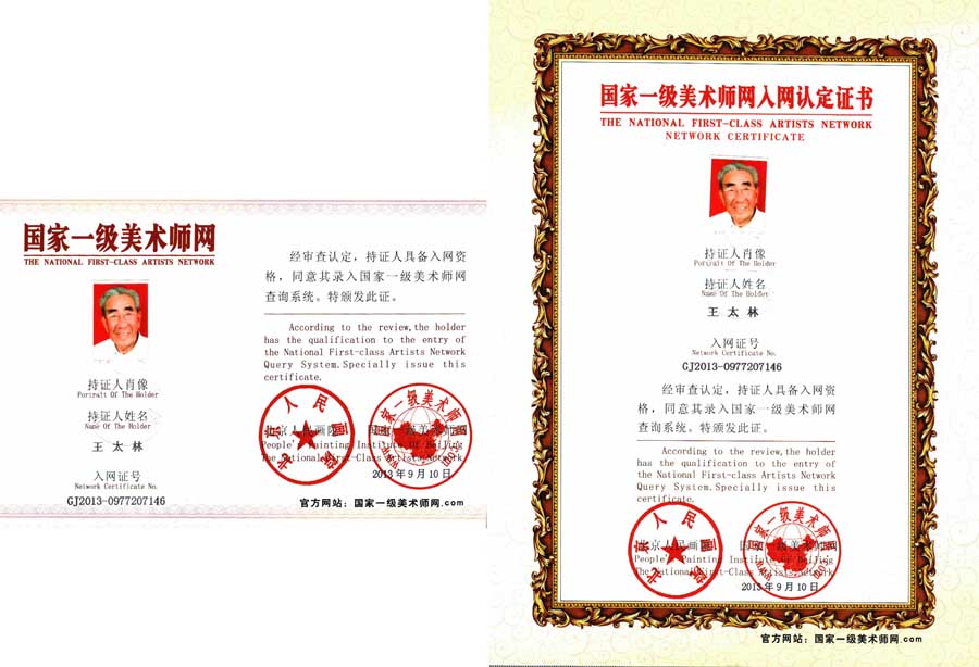 王太林,男,1929年生,辽宁省东港市人。从事25年高等教育,由北华大学离休后近30年间在中国书画的中级班、研究班、研究生班等学习和创作,2015年瑞典皇家艺术学院授予荣誉博士学位及瑞典皇家北极星勋章。