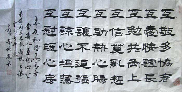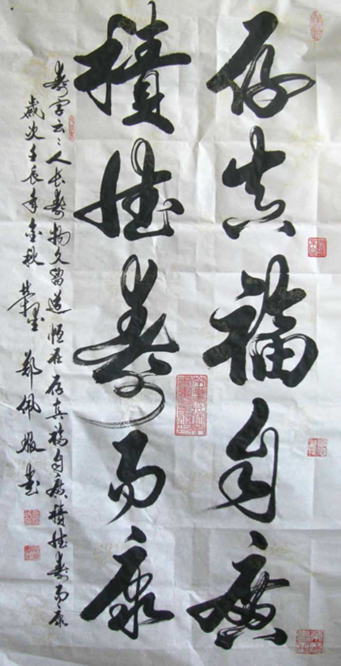 自幼酷爱书画艺术,书法各体皆通。几百幅作品送往日、韩、港、台、东南亚、欧美等地交流与收藏,二十余幅作品被全国各地碑林刻碑立石。他的作品以情为势,以势为法,道法自然,具有独特的技法和风格。飘逸而俊秀,苍劲不呆板,或如行云流水,或似蛟龙腾空,正如名家品评:作品出神入化,妙笔生辉。笔走——排山倒海;笔舞七彩生辉;笔扬点星移月;笔驰——万马奔腾。其作品多次在国内外展出,屡获诸多奖项。近年,荣获全国中华名人“风云人物”金奖、“2008奥运书画风云人物”金奖、五一时代英模奖、建国六十年最具影响力人物奖、感动中国文化人物国、感动中国艺术人物、感动中国杰出文化传承人,领军人物三大家、魅力中国书画五大名家、国际艺苑金圣奖,建党九十周年全球诗书画大赛金奖、首届世界人类非物质文化遗产成就奖、杰出传承人,走进新加坡——中国书画家精品展金奖等百余奖项,并荣获世界教科文卫组织首批特殊贡献金色勋章。2003初,赴法国等欧洲9国进行文化交流考察,中欧促进会授予“中欧和平大使奖”,在法国巴黎荣获“和平金奖”,部分作品被党和国家主要领导人、中欧促进会及巴黎市长收藏。