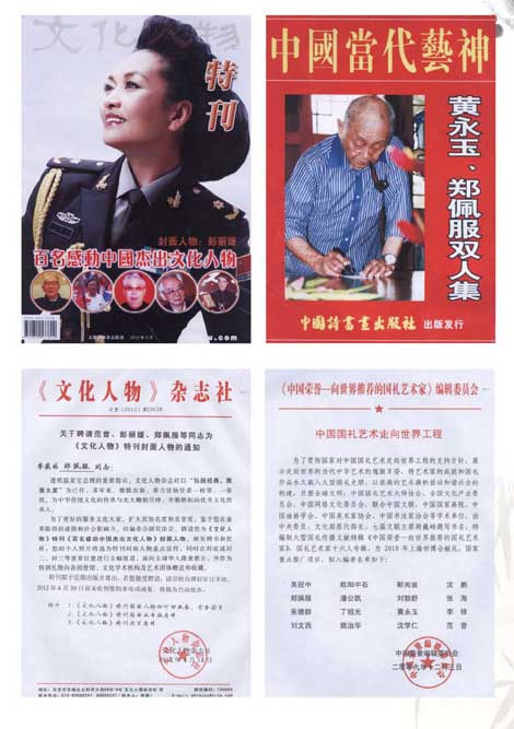 代表作品辑入《中国历代书画名家精品选集》、《世博中国艺术名家题贺大典》、《建党大典——金榜集》、《中国艺术传世名家》、《黄永玉、郑佩服双人集》、《中华翰墨》、《名家墨迹》、《当代书画名家》、《感动中国杰出文化人物》封面人物、《中国书法全集》等200余部典籍。