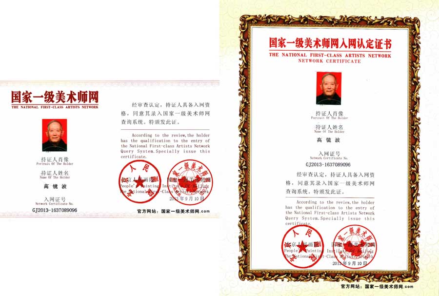 高镜波,又名高守爵,字长卿,男,汉族,1926年4月生。山东省乳山市人,大专毕业。1991年金陵老年大学书法系、国画系和篆刻班毕业。1945年2月参加工作,在交通部门曾任副部长、副主任。现为中国老年书画研究会、南京市书法家协会等10个书画会会员,并任江苏省老年书画研究会、金陵老年大学书画研究院顾问,中国书画名家名作编委会艺术顾问,南京青松书画会副会长,金陵舒体研究会名誉会长,世界教科文卫组织首席艺术家、艺委会执行委员,香港特区国画院、英国皇家艺术研究院荣誉院士,金陵老年大学教授。其书法、国画和篆刻作品100余次参加南京、北京、沈阳、神州、济南等地展览,曾多次获金奖、银奖、三等奖、优秀奖和佳作奖。作品多次登载报刊,入选50余本书画集出版。部分作品传入日本、朝鲜、美国,或被馆藏。参与主编出版七本书画集。编著专篇《章草<急就章>笔法图解》、《舒体<黄鹤楼>赏析》等。曾获“中国当代老年书画家”、“中国当代优秀书画艺术人才”、“华夏慈善书画艺术家”等称号。其名收入在《中国当代老年书画家大辞典》、《中国当代书画艺术人才》、《世界优秀专家人才名典》、《世界人物辞海》、《中外名人辞典》等典中。