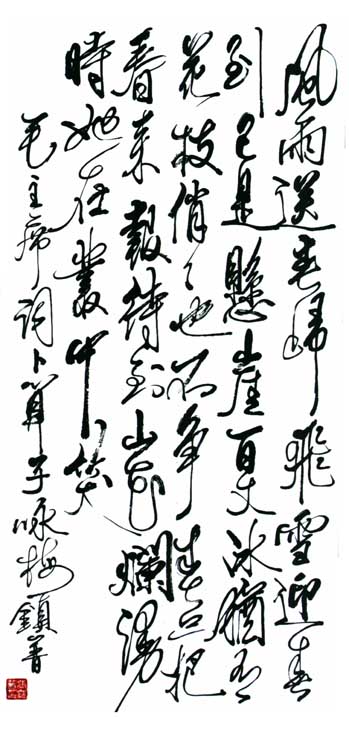 上小学时就好习字临帖,初学唐楷,师承颜柳,后出唐入晋,以王羲之《兰亭》、《圣教》为主,兼学赵书。到九十年代末易晋人尚韵书风为宋人尚意书风,专攻苏米之书,犹被米芾八面出锋、风墙阵马、沉著痛快之书风倾倒,至今每日临帖不辍。