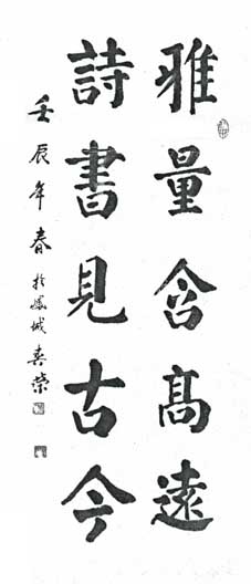 李春荣,字振东,男,1938年4月生于山东省莱芜市方下镇丰登官庄村人。1955年7月考入方下供销社任营业员;1959年10月加入中国共产党正式党员系干部;1961年7月任方下供销社生活资料供应站站长;1964年5月1日调羊里供销社任生活资料供应站站长、支部委员兼共青团支部书记、民兵连长、人事股长;1976年7月调杨庄供销社任党支部副书记理事会主任;1978年8月调碑酒厂供应科;9月任啤酒厂劳动服务公司经理;1992年11月退休;自2007年入市老年大学学习书法以来,经各位老师精心指导在楷书、行书、结体方面有明显提高。现为山东省莱芜东方书画院会员、中国国家书画院会员、中国书画会员。我个人自幼热爱书法,其作品曾入展山东省大众日报社及山东省大学老年大学协会、山东省中老年第三届书画大赛并获奖2009年国际孔子文化书画展名家联谊展荣获书法优秀奖;在2010年4月莱芜市举办的农民艺术作品展评选中获优秀奖;在首届中华赤子杯、书法美术评选大赛中暨2010年上海世博会中国当代艺术家首席重点推广工程中荣获一等奖,并授予2009年炎黄书画艺术年度人物荣誉称号;2010年12月授予中华名人艺术形象大师、中国紫金城书画院名誉院长;2011年8月授予世界华人艺术领袖人物;2012年2月授予世界华人书画艺术人民艺术功臣荣誉称号。
