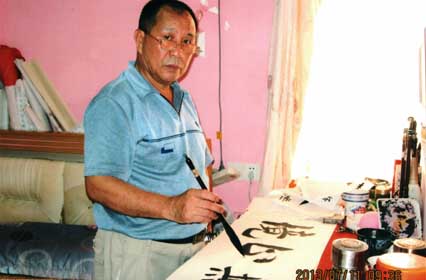 戴本通,江西省泰和县人氏。2004年开始习练书法。2009年下半年开始投稿至今,先后获一等奖十多个,二等奖二十多个、三等及入围奖更多。受到多个书协的好评,楷书练过唐朝多个名家,首先从柳体、颜体、再到欧体。草书怀素、张旭、孙过庭、不论那个朝代,只要是好字帖,我都认真研习,取其精华。直至现在,我只能写楷书、行书、行草之类,因精力有限,时间仓促,起步太晚,我知道“学海无涯,书艺无边”要能够掌握学好一种字体到高水平,我还相差甚远,要想学好书法,必须认真刻苦,因此我每天必须坚持五六小时练字,花2-3小时看书,只有这样才能提高自己的创作水平。