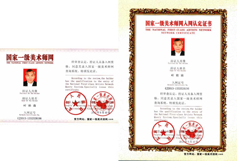 叶桂南(1941——),笔名阿南,男,广东龙川人(马来西亚归侨),1962年毕业于广东矿治学院地质系,曾任龙川县地震办公室副主任、高级工程师。现任循州硬笔书法协会副会长,中国现代青年书画家协会理事,当代诗歌协会会员,中国翰墨文化促进会会员,中国硬笔书法协会会员,中国书画家协会会员,中原书画研究院高级书画师,上海民族画院院士,中国人才研究会艺术家学部委员会一级艺术委员,“炎黄杯”中外书画艺术家精品交流大展赛组委会副主任,《跨世纪中外书画艺术家辞典》系列编委会编委,首届冰雪情海内外书画名家邀请展展事顾问,《中原书画报》特约记者,《当代诗坛》编辑部特约编辑、新加坡新神州艺术院高级名誉院士、高级荣誉顾问等职。参与珠峰杯、神州杯、文明杯、环球杯、四海杯、漓江杯、华联杯、太子杯、英雄杯等全国性书画大展赛中获优秀奖数十项,三等奖六项,二等奖四项,一等奖六项,铜奖五项,金奖八项。作品入选韩国《国际书画展》、《海内外书画家作品邀请展》、《95跨世纪当代诗书画印件品大联展》、《海峡两岸书画交流展》、《香港、澳门回归书画展》、《毛主席诞辰110周年纪念展》、《邓小平诞辰100周年纪念展》等,1995年作品在北京中国美术展出,并被大会组委会作为珍品正式收藏。作品入编《中华当代艺术家作品集》、《中国书法家选集》第一册、《国际书画艺术名人作品精典》。个人简历编入《国际名人录》、《世界华人艺术英才录》等,艺术简历还入网中国艺术研究院文化艺术人才库、TAF信息联网——书画篆刻名家数据库、《全球华人专家远程交流协作网》。作品还入选中国观音阁碑林刻石,并被观音阁陈列馆、上海双健斋等单位收藏。部分作品流入港、澳、台、韩、日、加、美、巴西等国家和地区。1995年被国内外22家艺团授予“世界书画艺术名人”荣誉称号,1996年被上海民族画院等艺团授予“献爱心模范艺术家”荣誉称号。2001年被澳门东方国际画会等12个艺团授予《中华传统书画风云人物》荣誉称号,2013年获首届世界华人文艺先锋金奖,被授予《世界华人文艺先锋人物》荣誉称号。