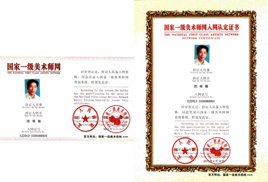 沈培德,1938年生。字润生,笔名一苇。浙江嘉兴人,爱好书法、古文、诗词。结业于湖北书画艺术专修学院(书法研修专业)。中国书画研究会会员,理事。中国名家书画院理事。中国艺术学会会员。主要业绩:中共党员。毕业于嘉兴师范学校。现在浙江省嘉兴电大培训工作兼书法教师,中国小主人俱乐部嘉兴分会辅导会。1963年至1991年先后16次被评为校、县、市“先进教育工作者”和“先进工作者”称号。在业余时间,曾为少儿编写颜、柳体书法教材,效果显著。经中国书画人才研修中心书画人才审定委员会统一考试(理论知识、论文著述、技法创作等科目)和专家共同评定为书法师(田英章主任签发)。作品及传略多次参加国内外书画大赛多次获奖入编。2009年授予中华脊梁杰出人物。2010年授予“共和国英模人物”。其业绩光荣入编人民日报社党史巨著《时代先锋》中。“首届中国名家世博艺术杰出成就奖、世博艺术杰出成就人物”。中国民族文艺家协会授予“民族形象大使”。2010年、2011年、2012年授予“感动中国艺术人物”。2012年授予“中国艺术·时代人物”年度最高荣誉。2011年《工作回顾》一文被载入《伟大的中国共产党》(获奖论文奖),并荣获特等奖。国际金奖。并授予“世界华人杰出创新人物”等。