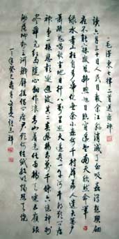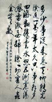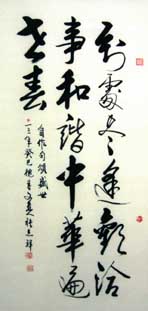 张志祥(1943——)字云,号云翔居士,笔名文长山人。祖籍天津。1943年出生于河北唐山,大专文化,中共党员。从小酷爱书画艺术,曾进修于天津书画进修学院国画系,受教于王怀智先生。书法师宗汉晋,隶书学乙瑛碑、华山碑、行书首学王羲之,楷书首学颜柳。篆刻学汉风并涉白石印味。国画以写意山水、梅兰竹菊渐长。摄影从中学开始到现在努力探索。作品70多次获国内外大赛金、银、铜及一、二、三等奖并多次赴日本、台湾、加拿大、北京展卖。书法作品曾在北京劳动人民文化宫、中国国家博物馆展出;作品及传略入编《世界文化名人辞海》、《世界书画家经典》、《中国书法选集》、《中国诗书画年鉴》、《中国历代书画名家大辞典》、《新中国航天题贺艺术大典》等60余部典籍,出版有《张志祥书画》。书法“中华第一龙”碑刻入中国千年文化碑林中。书法作品润格被国家权威机构中国书画收藏家协会专家认定每平方尺3800元。