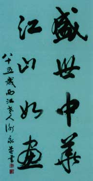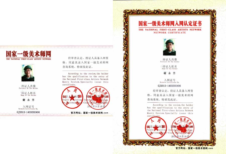 谢永芳,字泽川,号西江老人,男,一九二九年出生,广东德庆县人,高中毕业,西江文艺干部学习班结业(1950),华南农业大学原子能在农业应用研究学习班结业。1950年参加工作,曾先后任中、小学教师、农艺师。爱好广泛,特别是科学技术和文学艺术。曾获得广东省科学大会的“水稻化学杀雄杂交优势利用”的发明奖和先进工作者奖。还培育出“德庆晚占”,“钢枝占”,“德庆大占”,“献党1号”,“德庆短曲”等水稻品种和组合等在全国南方水稻区推广,获得文学优秀奖(诗)和书法优秀奖。原是中国农学会、中国种子学会中国科协会、中国遗传学会会员。曾在《广东省科技报》、《广东农业科学》、《羊城晚报》、《广东农作物品种志》发表学术论文十四篇,在《锦水流韵》、《枫之韵》发表诗词120首。在《红旗》出版社出版的《新时期中国共产党人优秀格言选集》、《中外哲理名言》、《八荣八耻箴言录》先后发表格言十余则。在《西江潮》、《中外书画名言作品集》等报刊杂志先后发表诗、书、画多篇。书法作品《体育百花春》被收《2008北京奥运》2008米碑林中,书法作品《中华和谐万年春》被收入为了和平——大型中华和平碑林中。