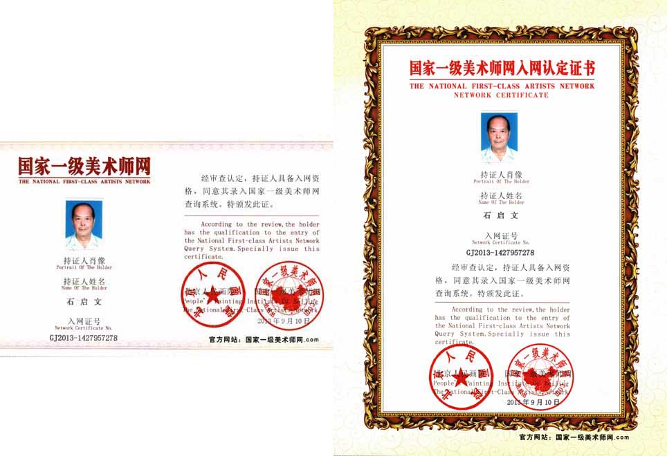 石启文,男,1931年7月生,贵州黎平人,侗族。贵州省老年书画研究会会员、省诗词楹联学会会员。自诗书作:”爱心”入编《纪念周恩来诞辰100周年》书画精品集,为浙江三味书画院珍藏;纪念抗日战争胜利60周年,入编《中华魂》翰墨典藏,获金奖;”初夏荷塘”入编《中国荷花诗书画大全》获评:”诗韵清爽、书风开张,交相辉映、意趣怡然”。