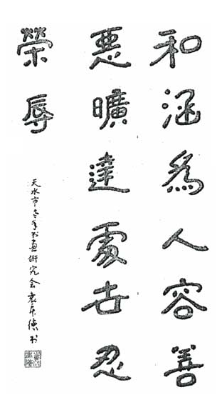 因童年读过“四书”、“五经”,苦练过楷书字帖。喜爱书法,近年常参加全国各类书画展,作品先后获金、银、铜、优秀、佳作奖、并分别入编《中华书画宝典》、《中国当代书法艺术鉴赏》、《白鹭杯中国书法大展赛作品集》、《中国文苑英华大系》、《中国当代书画艺术作品集》、《中国老年书画摄影艺术全集》、《百年经典——东坡书画艺术研究院创作作品大观》、《中国当代书画艺术家收藏大典》、《百世流芳——纪念岳飞诞辰901周年暨首届精忠杯全国书画剪纸大赛作品集》、《夕阳之歌——经典书画怀历》等大型书画集。授予“全国爱国主义教育基地百名书画家”,特聘为“精忠书画艺术研究院”名誉院长等职。现已入编《世界名人录》第十二卷等世纪巨著。