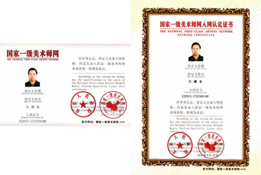 车耀喜,男,汉族,生于1950年7月,甘肃省崇信县人,崇信县卫生局退休职工。爱好书法艺术,学习书法二十余年来,任人为师,力求所爱,师古不泥;努力汲取前人和他人的经验和艺术精华,积极求索,反复锤炼;使自己的基本功力和艺术水平不断得到提升。近八、九年来,搞稿和受邀参加各种地域和全国性的书法展赛活动一百余次,获三等奖以上和铜奖以上奖项近八十次。作品被多家艺术馆、所等机构收藏。现为中国书画家协会会员、中国书法研究院艺委会会员、日本东京中国书画院特聘院士、中国书画艺术研究会理事、中国国家书画院副院长、中国国际国学院名誉院长、台北故宫书画院名誉院长、北京思博华厦艺术交流有限公司艺术顾问,平凉市书法家协会会员及多家书画院签约书法家。