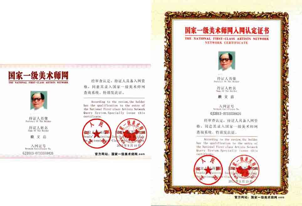 赖文忠自幼酷爱书画,特擅书法,五体皆能,尤工草书,是自学成才的中国书法大家,代表作有以正、草、隶、篆分别创作的《孙子兵法》全文四卷长卷和《增广贤文》篆书作品长卷,其书画艺术成就在国内外产生一定影响,有“中国当代气神”之誉。2007年与宴济元、王庆一、赵梅生、廖静文等百名文艺名人同授予“中华文艺复兴贡献人物”荣誉称号;2008年与贺敬之、白雪石、丁芒等30位名家同授予“中国改革开放文艺终身成就奖”荣誉称号;2010年世界教科组织联合协会等部门评选为世界范围12名之一的“世界艺术大使”(以刻印铭记终身荣誉)。2011年被评为“文艺百年传世人物”,并与中国当代文艺泰斗金庸、启功、黄永玉等四人同作《文艺百年传世人物》的封面人物而载入史册。2012年中国艺术学会为其隆重推出并出版发行了《国家文艺名人赖文忠专访特刊》。并作为中国近现代诗书画领域顶头人物,编入纪念杜甫诞辰1300周年《中国诗书画100大家》和《中国当代气神》、《黄永玉、赖文忠双人集》。