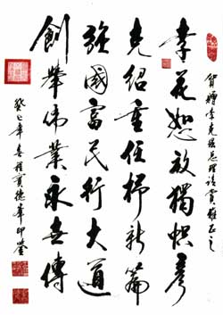 程德峰,别名程添乐,笔名程实,艺名卜什,赠号贤达,知趣山人。男,1946年如月生。中国辽宁大连人。资深教师。世界优秀华人专家,中华国学文化艺术大使,中国教育家协会理事,国际知名文艺家联合会副会长,中国艺术工作者协会终身名誉会长。二○○六年十月一日,国庆应典开幕式,海内外杰出爱国人士,华人财富风采座谈会主题报告会“学术论坛”主讲人(於北京人民大会堂)“成功一举拼几载,虽苦乐在其中矣”和“书尽天下墨海,效法古今群芳”字联获1989年中国临沂“书圣杯”国际书法大赛奖。“国粹杯”纪念毛泽东诞辰120周年,中国实力派艺术家精品展。为中华开国元勋毛泽东和国家领导人题嵌名联,荣获“首届世界华人文艺先锋奖”和“首届中华红色文化传承杰出功勋奖”。并特推选为“红色文化形象大使”。他志向广泛,视文武之道为养生乐趣,又深谙易理玄学。用“前九之年后九通……”。八句歌诀能推算出中华万年历法,对人生四柱姓名赤预测学及命理禳解颇有造诣。融通文史,出入古今,擅长古诗文创作。成就卓著,蜚声海内外,为学林所共仰,在学术上达到独步程度。发表的创作论《新议李白<静夜思>中的“床”字》解开了中外文坛史上1300多年的错解。新编教科书已正式改版,版权06-2005-A-36号。论著特邀参加1998年中美合作,第二届“世界华人艺术大奖”中国教育家协会年会“学术论坛”演绎。(即泰国首都曼谷举行)且荣获国际优秀论文证书(中英文版第5709号)。传略业绩入选《全球华人专家名人远程交流协作网》、《世界名人录》、《中外名人辞典》等数十部传世典籍。