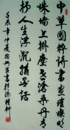 “书法感兴趣,曾登大雅堂;文学亦爱好,兴至有吟唱”。书作获中华杯等36个金奖,国画一个金奖。作品入编《中华百年国粹1911-2011》等。