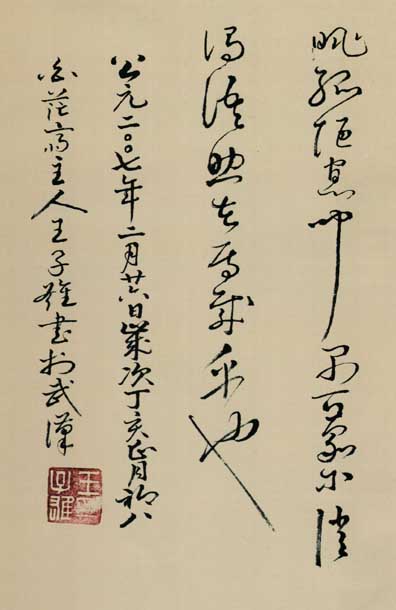 王子雄,男,笔名白茫,现籍武汉市,系退休国家机关公务员。现为湖北省书法家协会会员、中国书画家协会会员、香港国际画院聘任高级书法师暨客座教授、中国兰亭书画院名誉院长、江苏省颜真卿文化研究会名誉主席、桂林炎黄书画艺术研究院理事、北京《文化人物杂志社》名誉主席。“东坡赤壁诗刊”社员等等。